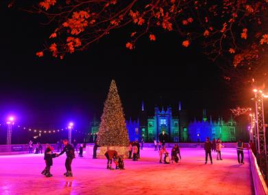 Immerse yourself skating in the magical scenes where King Henry VIII once walked, surrounded by beautiful greenery, captivating fairy lights, and a warm, festive experience.