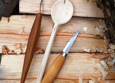 How about trying something different in 2026? Come along to our Saturday afternoon crafting session and learn how to make your very own wooden cooking spoon. In this friendly, fun small-group session, experienced local spoon carver Eleanor Morgan will guide you through all the steps, showing you how to safely carve a spoon from local wood using just two different knives. You'll find yourself lost in a world of wood chips and the beautiful facets of the natural product as you're taken through the spoon carving process from beginning to end. Starting with a wooden blank, Eleanor will teach you how to create your very own cooking utensil to take home and show off to family and friends! The workshop is suitable for complete beginners and no experience is assumed. However, as we'll be using sharp knives, the class is for over 18s only. All tools and wood will be provided. Coffee, tea and homemade cake are included too, to keep energy levels up! "A wonderful workshop. Ellie was helpful and encouraging. Delighted with my spoon" Isabelle