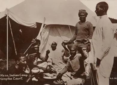 Soldiers from the Indian Army camped at Hampton Court Palace on a number of occasions in the early 20th century. They were invited to join the coronation celebrations of Edward VII (1902), George V (1911) and George VI (1937) as well as the First World War peace parades in 1919. For some, this would have been their first visit to England.