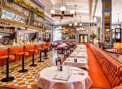 Relax in style in our light and airy dining room, surrounded by beautiful Art-Deco detail and striking burnt orange banquettes that bring comfort with a pop of vibrant colour. For special celebrations and big-occasion dining, we also have an elegant private room, which seats up to 26. Whether you’re booking for breakfast, brunch, dinner, lunch, afternoon tea or cocktails, you’ll find everything you need.