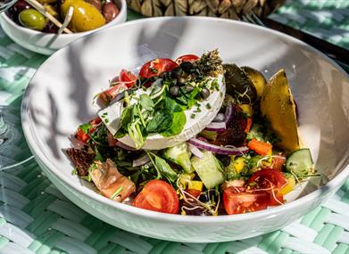 Our seasonal à la carte menu is filled with freshly sourced Mediterranean-inspired dishes and British favourites, alongside draft beers, signature cocktails, and a curated wine list.
