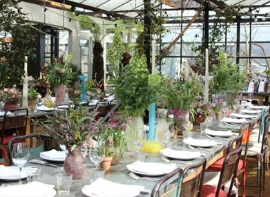 You could also dine at our largest table within Petersham Nurseries Restaurant, which can accommodate up to 18 guests.