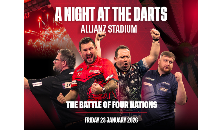 A Night at the Darts - The Battle of Four Nations, brings together some of the biggest names in darts, including James Wade, Jonny Clayton, Brendan Dolan, and Cameron Menzies. Adding to the thrill, rugby legends Wayne Barnes and Topsy Ojo will make special appearances.