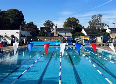 Hampton Pool is an iconic London lido situated in two acres of woodland next to Royal Bushy Park. The main pool is 36 metres long, offering lane and recreational swimming, while the learner pool is dedicated to children and their parents.