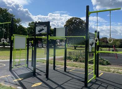 Outdoor Gym – This site has a large calisthenics rig, air skier, and spinning bike.