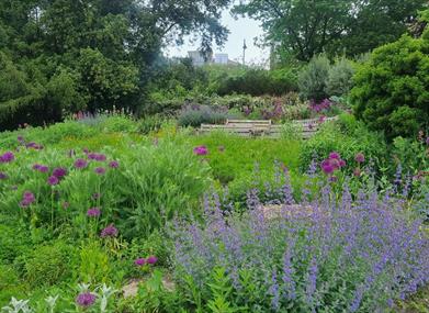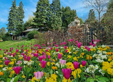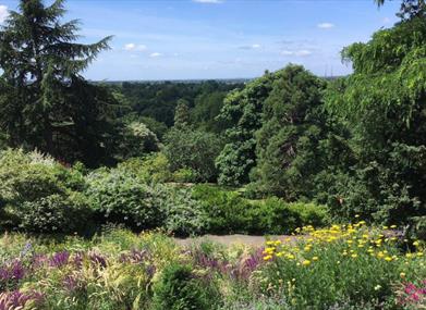 The gardens are on a steep slope and unfortunately step free access is not possible from the upper lawns up to Richmond Hill. Dogs are welcome in the Gardens, but must be kept on a lead at all times