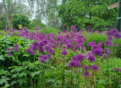 Terrace Gardens, located close to Richmond town centre, was originally formed from three separate eighteenth century estates and was opened as a public park in 1887. Between 2007 and 2009 The London Borough of Richmond upon Thames invested £1m in the refurbishment of the Gardens. The project included major upgrading of the infrastructure of the Gardens, new signage to reflect the historical, ecological and educational aspects of the Gardens, and repairs to furniture, features and artefacts. In addition, large areas of the Gardens were re-planted with a mixture of sustainable planting designed to look attractive but also be valuable to wildlife, as well as more traditional planting such as the Rose Garden and Herbaceous Border. Wildlife features such as Stag Beetle Loggeries, Dead Hedges and a Leaf Litter Sculpture were installed in the Woodland Garden and we also opened up spectacular views to the River Thames from within the Gardens which had become obscured over the years by vegetation.The Gardens provide wonderful opportunities for walking among the mature trees, enjoying the formal and informal planting, having a picnic, being with nature, as well as sitting or reading and enjoying the views of the River Thames. There is also a café in the gardens which is open 7 days a week during daylight hours.
